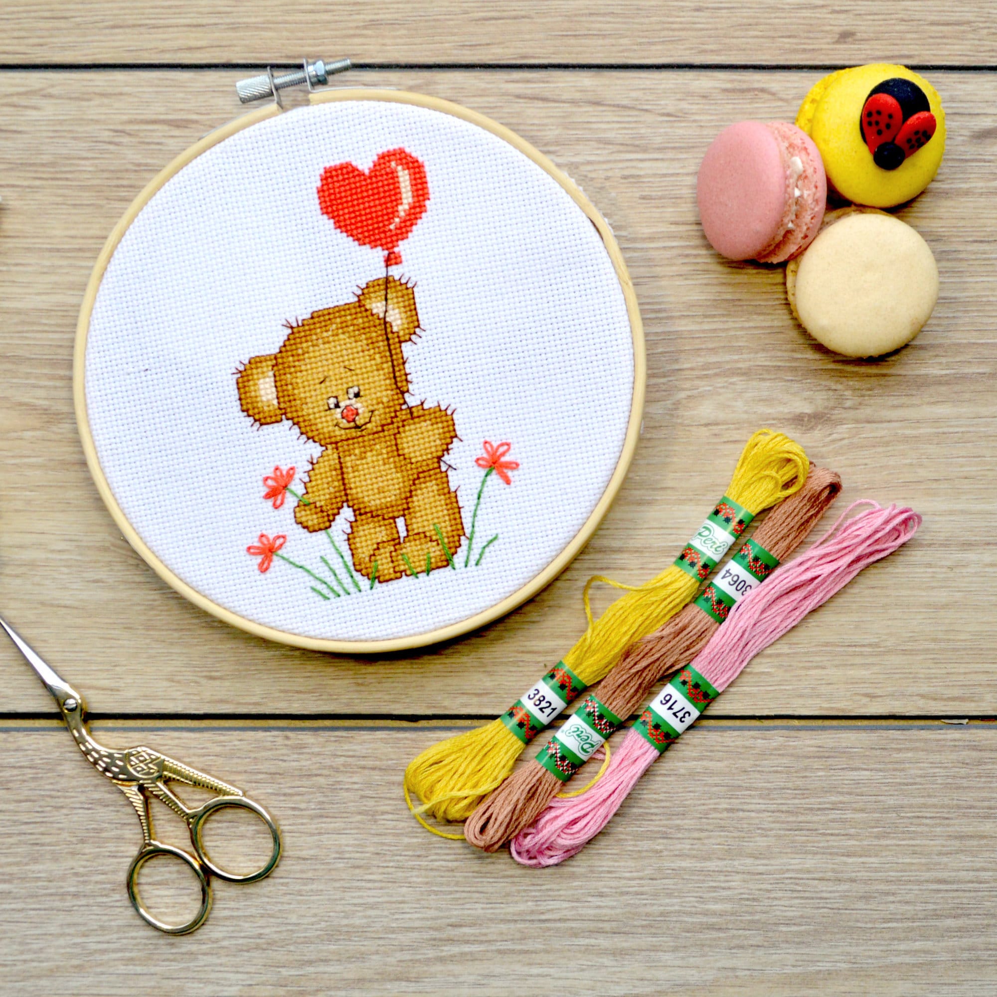 Kreuzstich Starter Set Fur Kinder Teddybar Stickerei Diy Etsy De